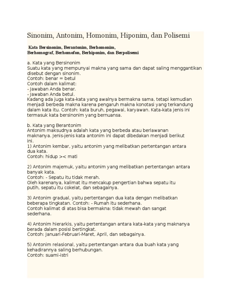 Sinonim Antonim Homonim Hiponim Dan Polisemi Pdf